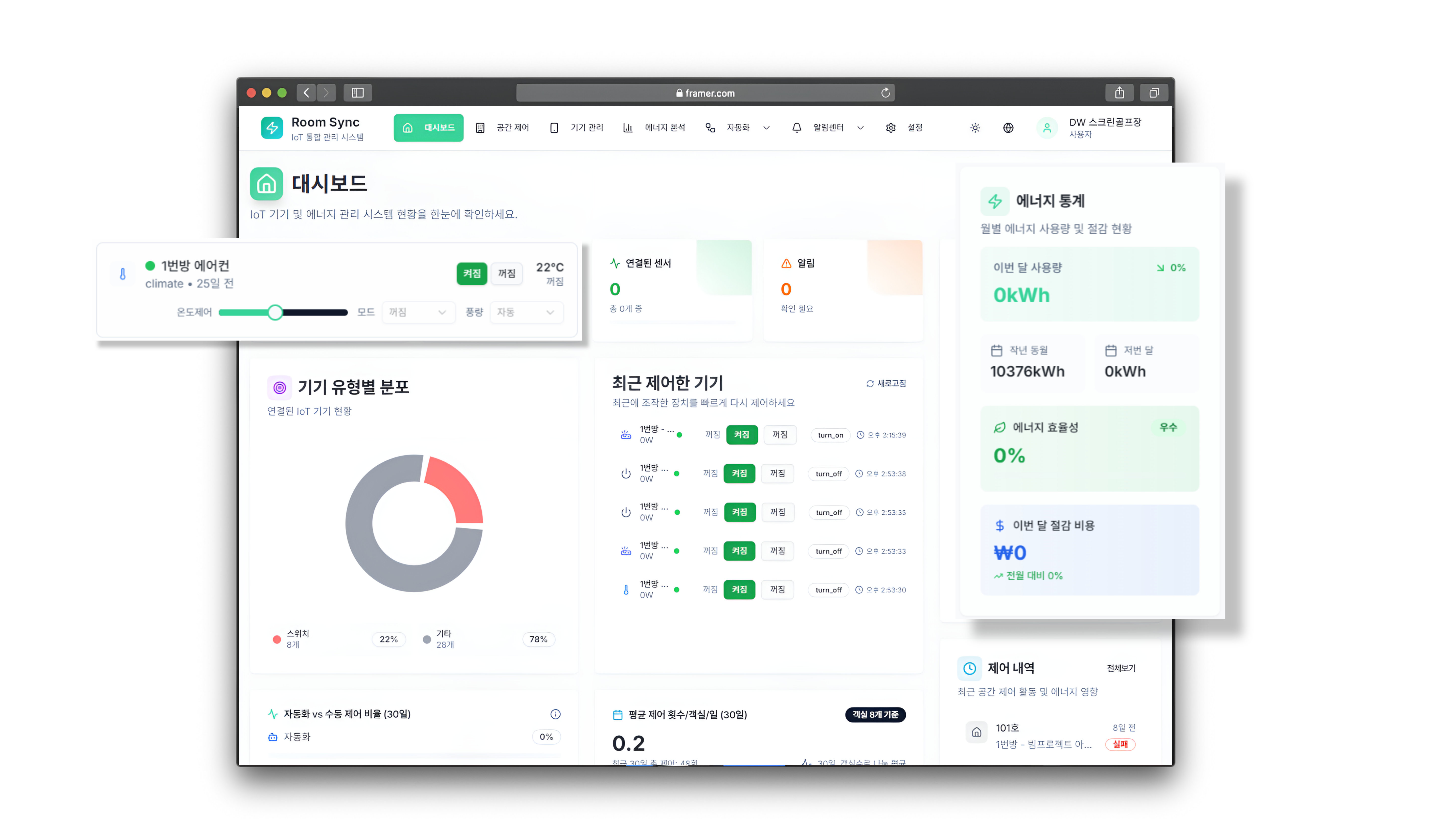 IoT 기반 실시간 에너지 관리 시스템. 센서 데이터 수집부터 분석, 자동 제어까지 운영 효율을 극대화하는 스마트 IoT 플랫폼